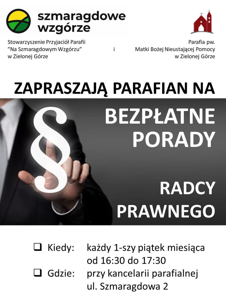 W okresie wakacyjnym Msze św. w dni powszednie:poniedziałek godz. 7.00wtorek – sobota godz. 18.00niedziela godz. 8.30; 10.30; 12.00; 18.00 Kancelaria parafialnaczwartek godz. 16.00W sprawach pilnych prosimy o kontakt przy okazji Mszy św. lub telefonicznytel. 690 593 442